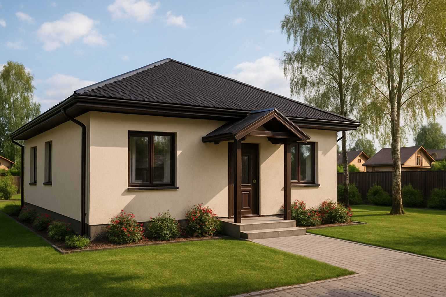 Так выглядит дом из газобетона после штукатурки и отделки